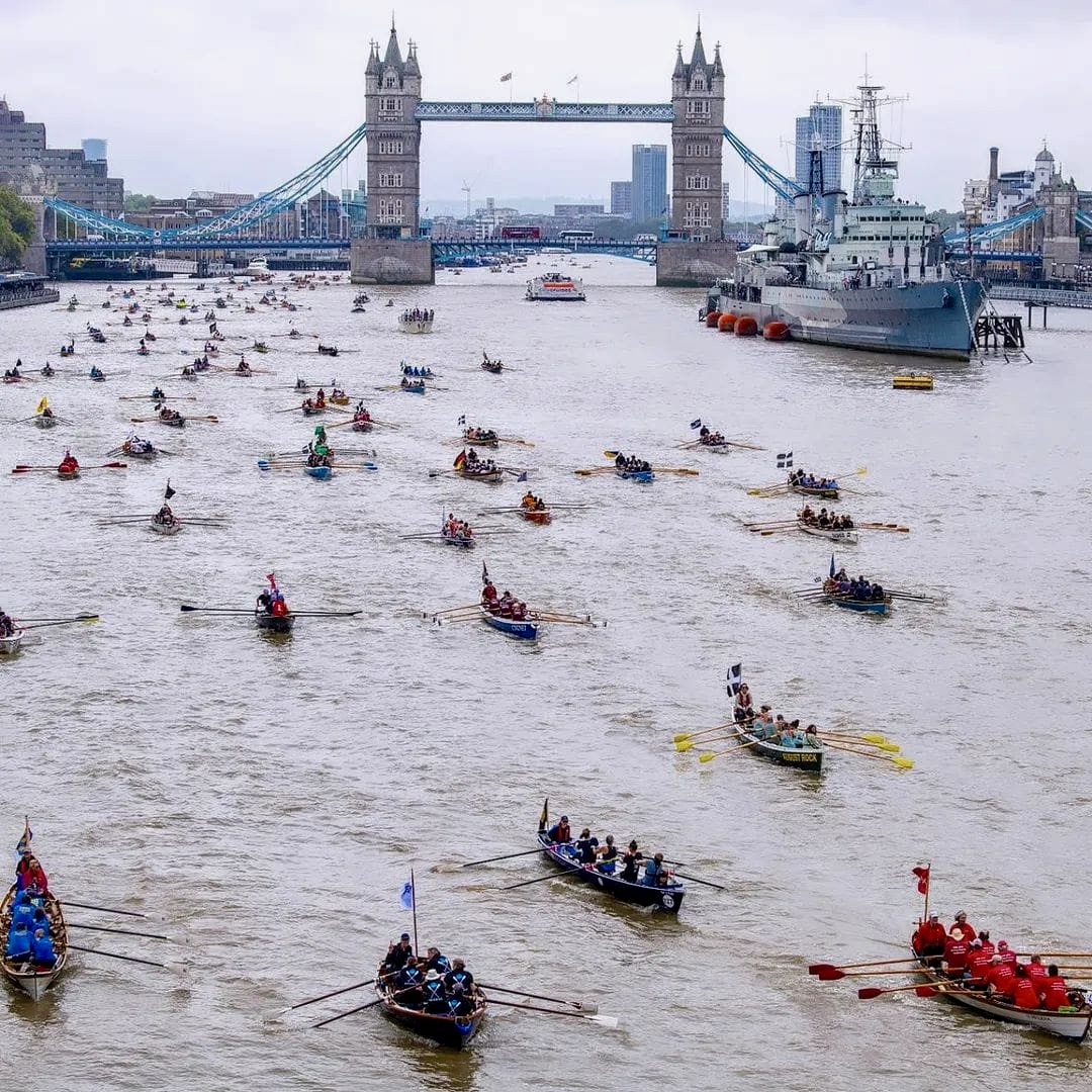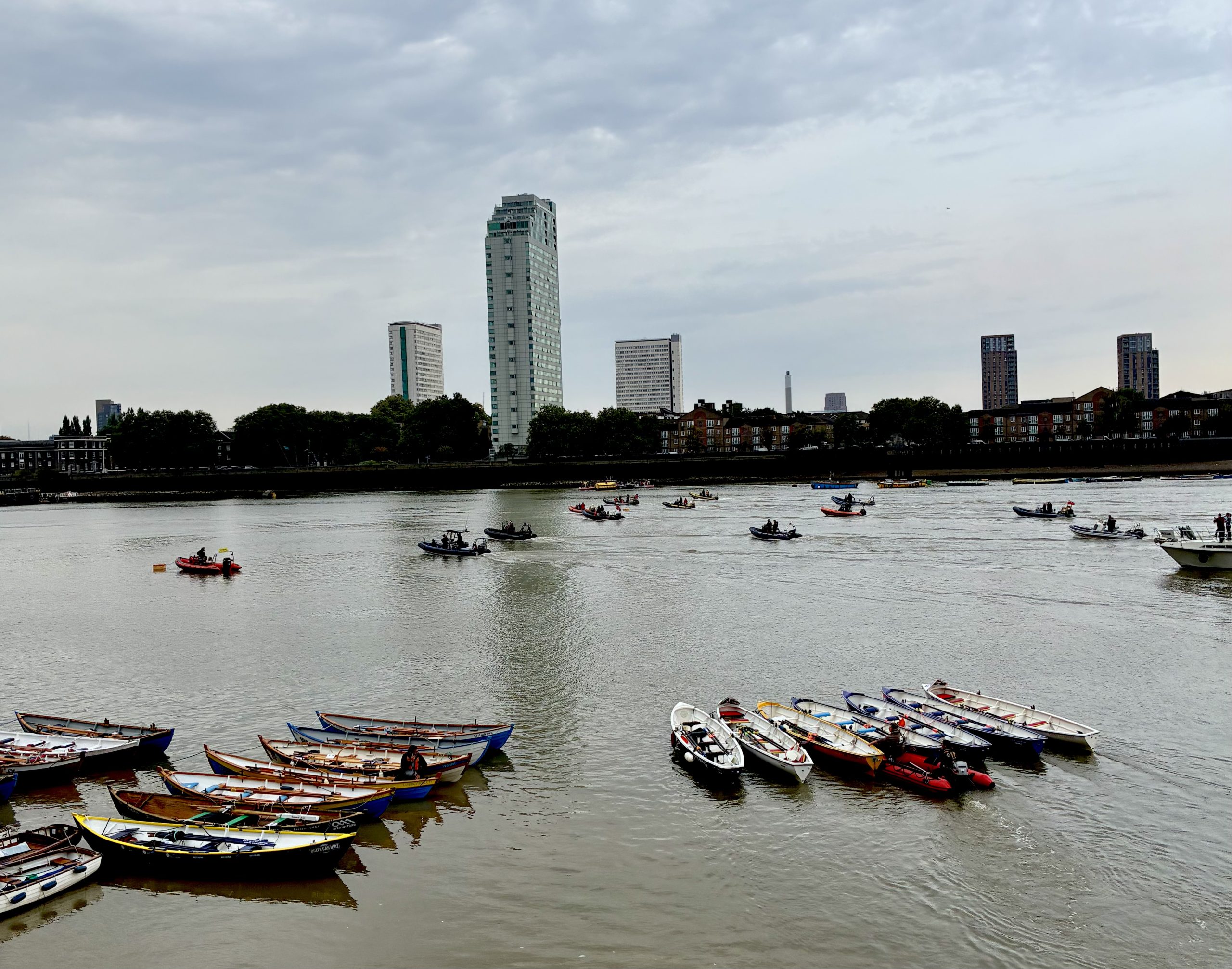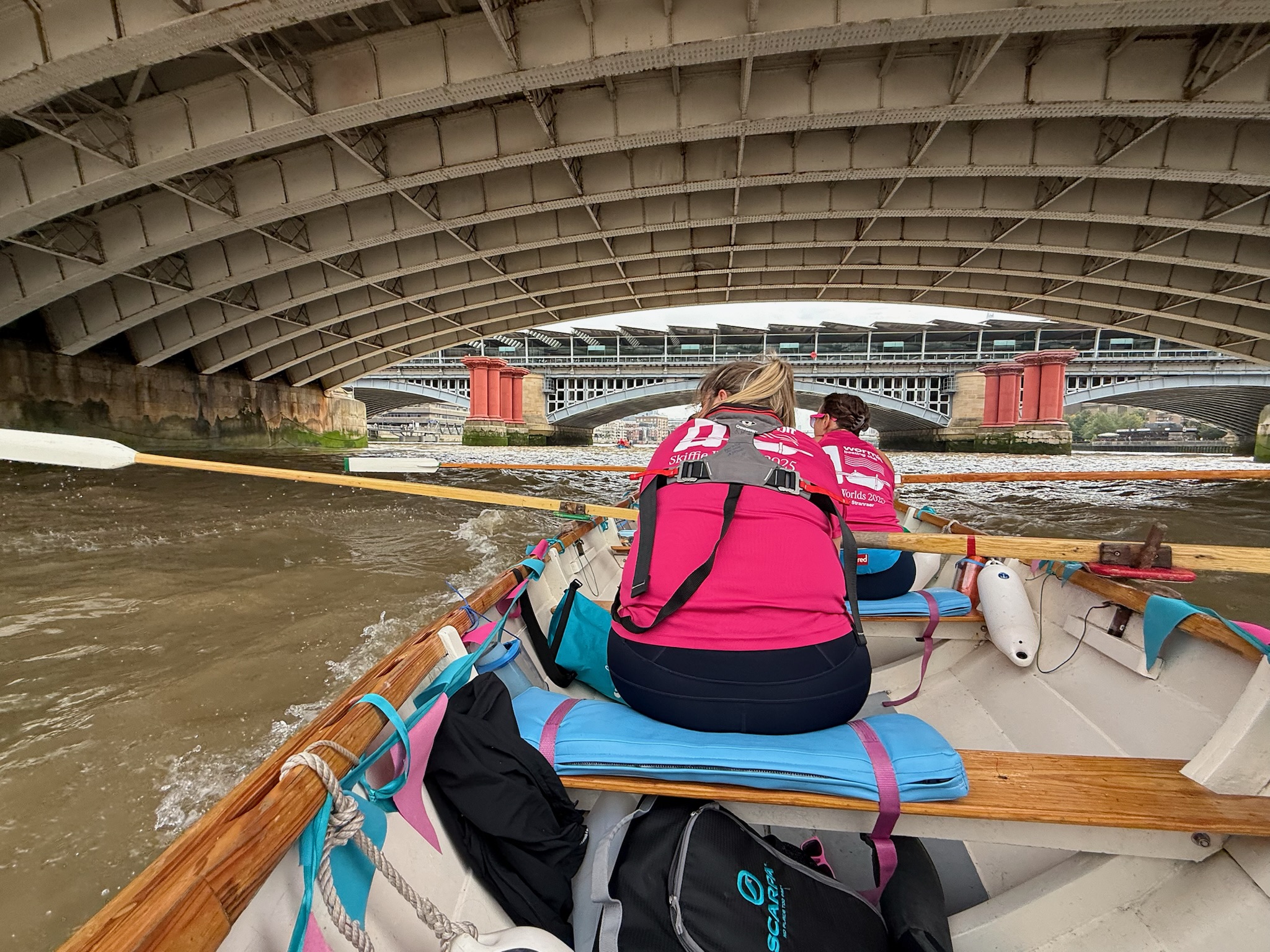 Sometimes in life, reality conspires to confound expectation as, for example, when the menu’s triple-fried artisan rosemary-seasoned potato wedges turn out to be, well, chips. For those in Wormit’s skiffs, surging at full tilt up the Thames in the midst of a vast and colourful flotilla, sinews straining and hearts pounding, sparing no quarter for those around them, for once reality plays ball.  And then some. Indeed, were it possible to access the individual inner monologues of our skiffies at this very moment, as they pass into yet another Visit London vista - whether Tower Bridge, the Palace of Westminster, the London Eye, the National Theatre or Battersea power station - the consensus view would likely be ‘Well, THIS is an absolute BLAST!’  All around is a melee of competing boats, jockeying for advantage as the next spectator-bedecked bridge approaches and the available leeway seems to diminish with alarming speed.  The gig on Flying Boat’s port beam would appear not to have read the bit in the (dauntingly comprehensive) race rules about ‘no overtaking under bridges’, and up ahead a scout-powered tub has decided to heave-to mid-channel. And all the while the marshals’ powerboats and police launches are charging about demonstrating that, in the hierarchy of the hard-to-herd, rowing boats trump cats every time.  It’s like Canaletto’s bustling Grand Canal, only turned up to eleven.  And with RIBs.  Avoiding numerous inventive-collision opportunities, both Wormit skiffs more than hold their own, Flying Boat’s crew successfully putting into practice their change-over routine with successive coxes keeping things on a mostly even keel. Eventually the tourist landmarks and high rises of central London give way to exclusive riverside apartments, water meadows and the kind of bucolic scenery to warm the heart of Jerome K. Jerome. Or Toad.