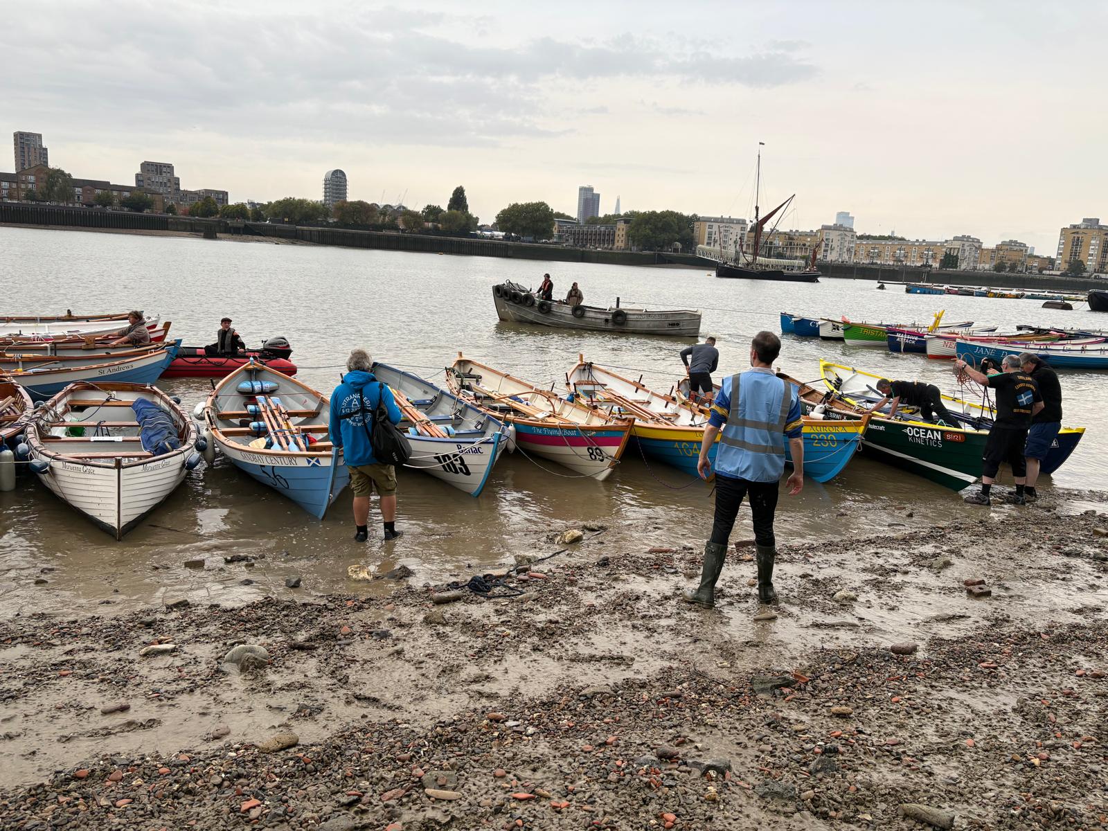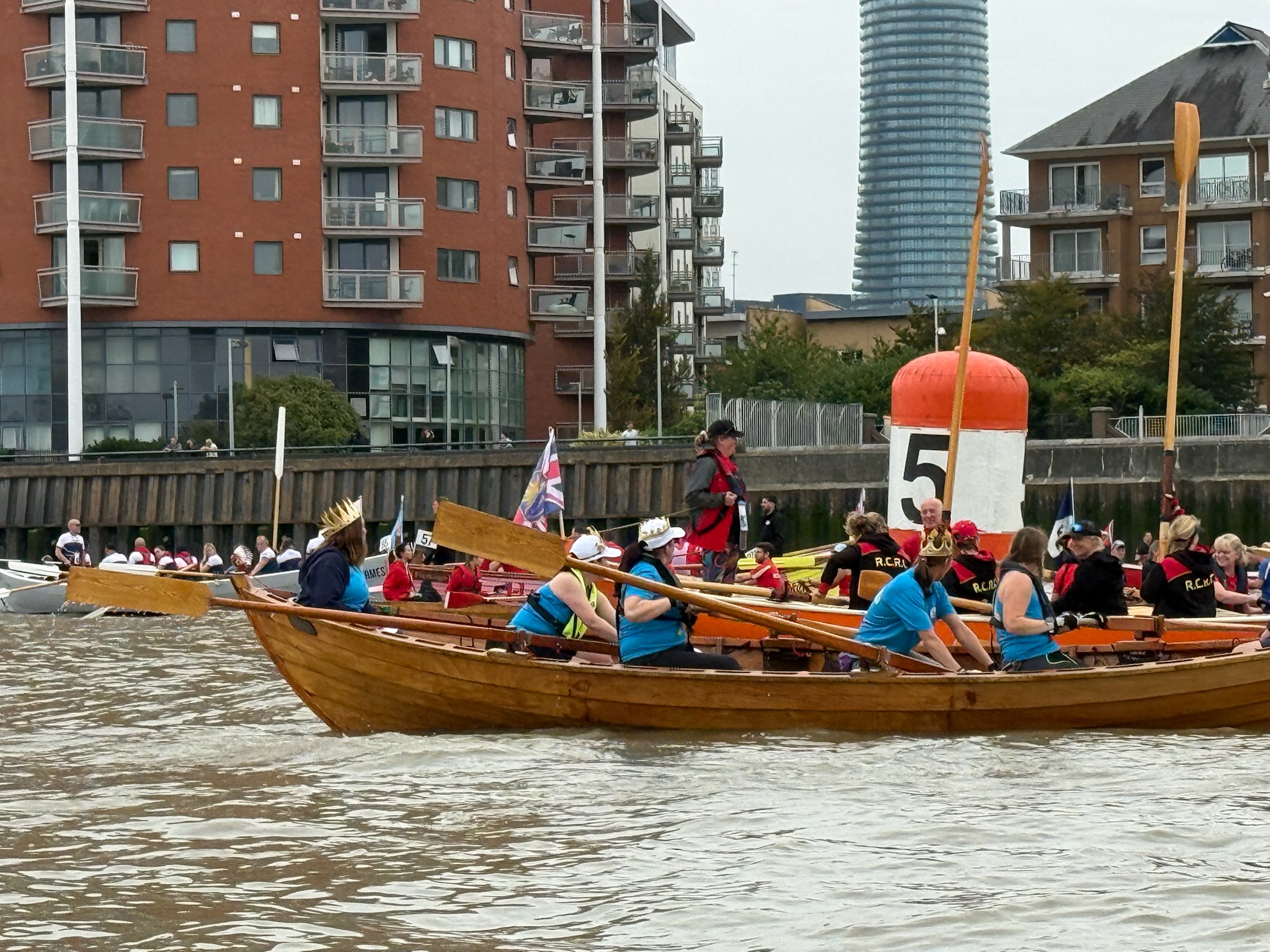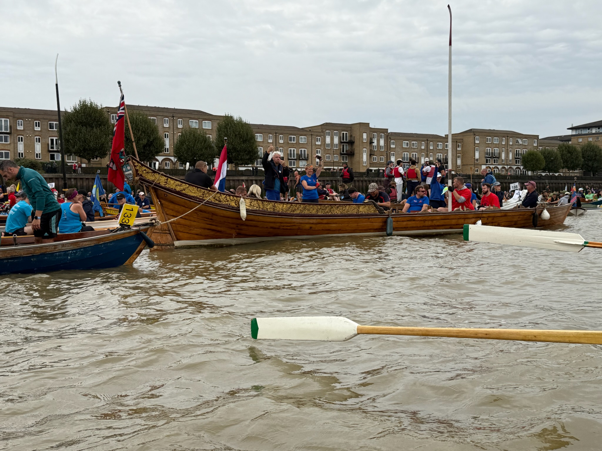 As plans firmed up, it looked like the Club would be able to muster the requisite six-person crews for two boats, the arcane requirements of The Company of Watermen and Lightermen of The River Thames requiring each boat to carry a passenger and coxswain, along with a flag of at least 3 x 2 feet.  With the Club Committee onside, skiffs The Flying Boat and Catalina were earmarked for the long drive south and the rigours of a race expected to attract over 2,500 competitors in over 300 craft of all sizes, ranging from the sleek, no-nonsense Thames watermen’s cutters to sturdy whalers with a dozen rowers, from fast Cornish pilot gigs and Norfolk wherries to the swift and seaworthy Celtic and Pembrokeshire longboats, from elegant picnic boats and countless other classes of craft to the Queen of the Seas in the familiar shape of our own St Ayles skiffs.  The only common factors apart from the aforementioned passengers and flags were that all the vessels competing were powered via fixed seat rowers.  A fiendishly complicated handicap system ensures fair play and tests the seamanship and boat handling skills (and intellectual capacity) of coxes and crews alike; more on which in a moment.