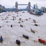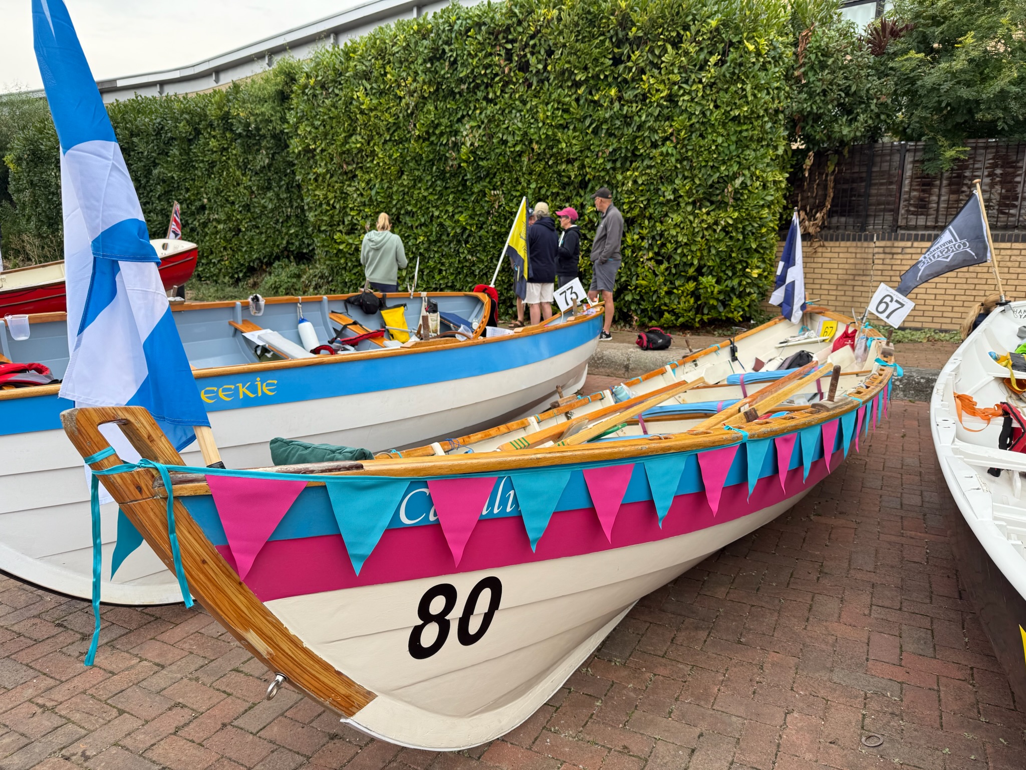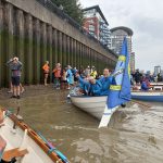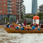 As plans firmed up, it looked like the Club would be able to muster the requisite six-person crews for two boats, the arcane requirements of The Company of Watermen and Lightermen of The River Thames requiring each boat to carry a passenger and coxswain, along with a flag of at least 3 x 2 feet. With the Club Committee onside, skiffs The Flying Boat and Catalina were earmarked for the long drive south and the rigours of a race expected to attract over 2,500 competitors in over 300 craft of all sizes, ranging from the sleek, no-nonsense Thames watermen’s cutters to sturdy whalers with a dozen rowers, from fast Cornish pilot gigs and Norfolk wherries to the swift and seaworthy Celtic and Pembrokeshire longboats, from elegant picnic boats and countless other classes of craft to the Queen of the Seas in the familiar shape of our own St Ayles skiffs. The only common factors apart from the aforementioned passengers and flags were that all the vessels competing were powered via fixed seat rowers. A fiendishly complicated handicap system ensures fair play and tests the seamanship and boat handling skills (and intellectual capacity) of coxes and crews alike; more on which in a moment.