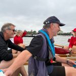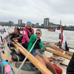 The exact genesis of how this particular event popped into the Club’s programme remains a mystery (Lesley has been mentioned as a possible prime instigator, with Gail as a likely co-conspirator) as, in amongst all the other Club goings-on, The Great River Race became, as it were, a thing. ‘GRR’ for short is billed as ‘London’s River Marathon’ and is a spectacular, competitive race from Millwall in the east to Richmond in the west, travelling under no fewer than twenty-eight of London’s famous bridges. The race seemingly began back in 1988 with sixty-one boats crewed by a bunch of enthusiasts ranging from young scouts to hardened offshore rowing veterans coming from everything from rowing clubs, pubs, schools, boating societies and the armed forces, since which time it has grown the proverbial arms and legs to become the biggest and most prestigious event of its kind in Europe, with participants competing for 37 trophies. This year, around 300 crews took part, including from the Americas, the Antipodes, many European countries plus of course the Home Nations.