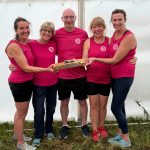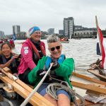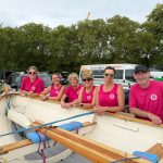 As the final few miles slip under our skiffs’ keels, the gap between The Flying Boat and Catalina, holding the advantage for most of the last two hours or so, begins to narrow, and briefly they are locked in a two-boat battle, each taking turns to nose ahead of the other. Finally, the veterans prevail – perhaps in part a consequence of their onboard musical chairs (‘Discuss’), and with her crew relinquishing their last vestiges of energy The Flying Boat sweeps across the finish mere minutes ahead of Catalina. With both boats safely recovered, with practiced deftness, onto their respective trailers, that, it seems, is that. Our trusty skiffies retire to an extensive and thronging refreshment area in search of well-earned hydration, ice cream and more substantial sustenance; given what they charge for 99s and burgers in London the spirit of Dick Turpin appears to be alive and well. There is, however, one more highlight yet to enjoy when, above the general hubbub of a thousand excited and increasingly well-lubricated rowers, amongst the various trophy winners’ announcements over the PA a familiar name is heard. ‘Did they just say ‘Wormit’?’ asks Jenny. ‘Do you know, I rather think they did’, replies Nicky, or maybe it’s rather more of a ‘Waaaaaahh!!!’. Either way, the big fat red cherry on top of an already plump and toothsome cake is Wormit’s women winning their class in GRR. In the ensuing bedlam it is a matter of record that ‘Wormit! Wormit! Wormit!’ (repeat ad infinitum until exhausted), a familiar refrain in the world of the St Ayles Skiff, has become one too in the respective worlds of Cornish pilot gigs, Celtic longboats etc etc. Quite the moment. Quite the crew. Quite emotional, truth be told.