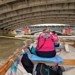 Weeks of planning, form filling, briefings and preparations all came together on a bright September Wednesday, where following final practice by The Flying Boat crew to perfect their seamless mid-race changeover technique – not so much poetry in motion as ‘get that oar handle out of my ear’- boats were tied down, electrics connected up and tyres checked ahead of the epic 1,000 mile round trip to That London and back. With a cheery wave and a song in their hearts (in Sam’s case possibly ‘Don’t Rock The Boat, Baby’) our intrepid skiffies stepped into cars, climbed aboard campervans and clambered onto trains in the fervent hope that their next meeting would be on the banks of Old Father Thames, or at least in a pub somewhere within hailing distance of that mighty waterway. It is fair to say that while in general everybody enjoyed an uneventful and comfortable journey south, for those who decided to let the train take the strain (other ‘70s advertising references are available), the decision to indulge themselves with the comparative comfort of travelling first class was not entirely as anticipated. While Heather sat in Miss Haversham-like splendid isolation, Ruth found herself elsewhere on the same train in company with a rabble of pampered pooches whose general demeanour and personal habits left a lot to be desired. ‘Not so much First Class as Best in Class’, Ruth was later heard to lament.